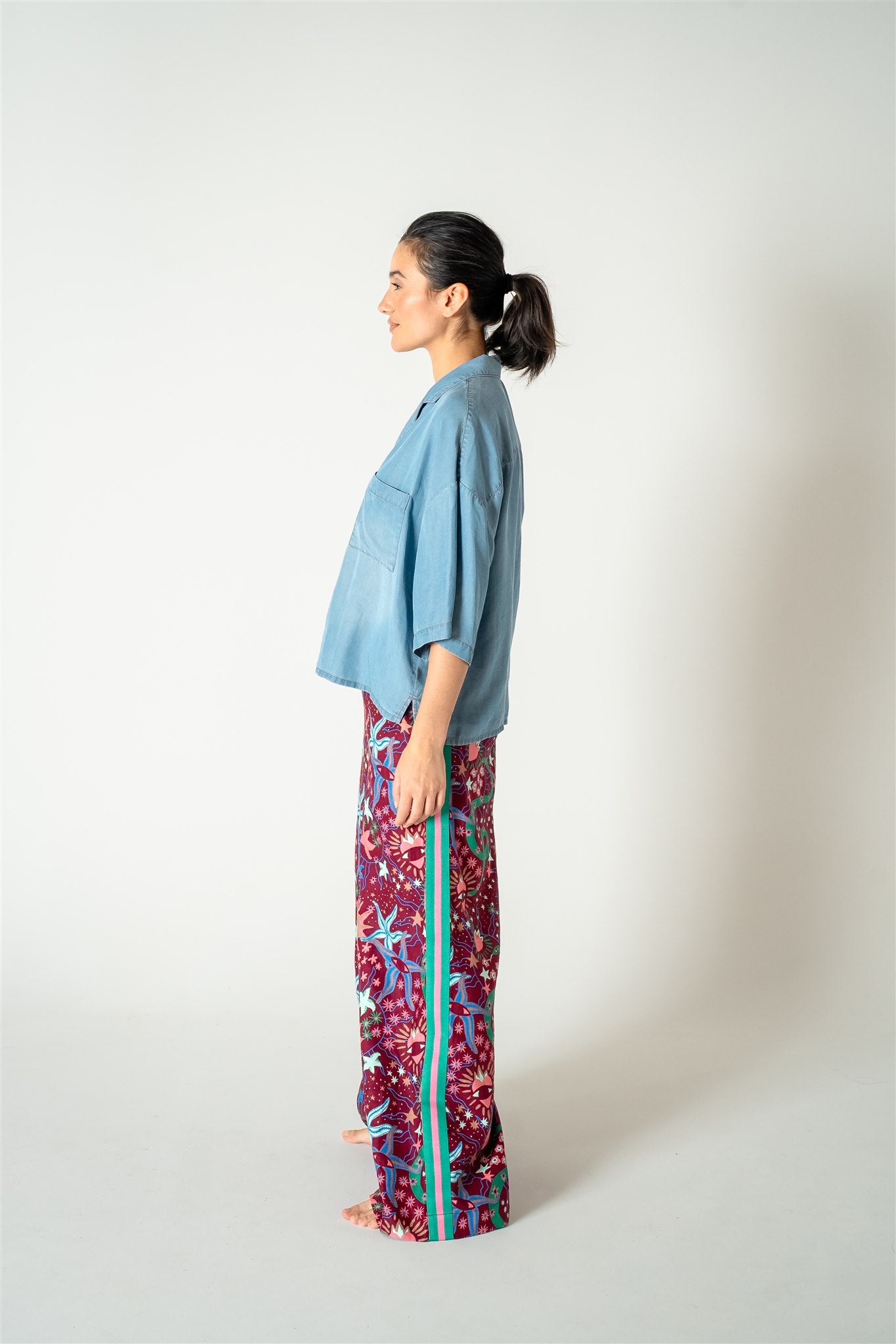 Fleur Palazzo Wide Leg Side stripe I’ll Mare Printed Pant
