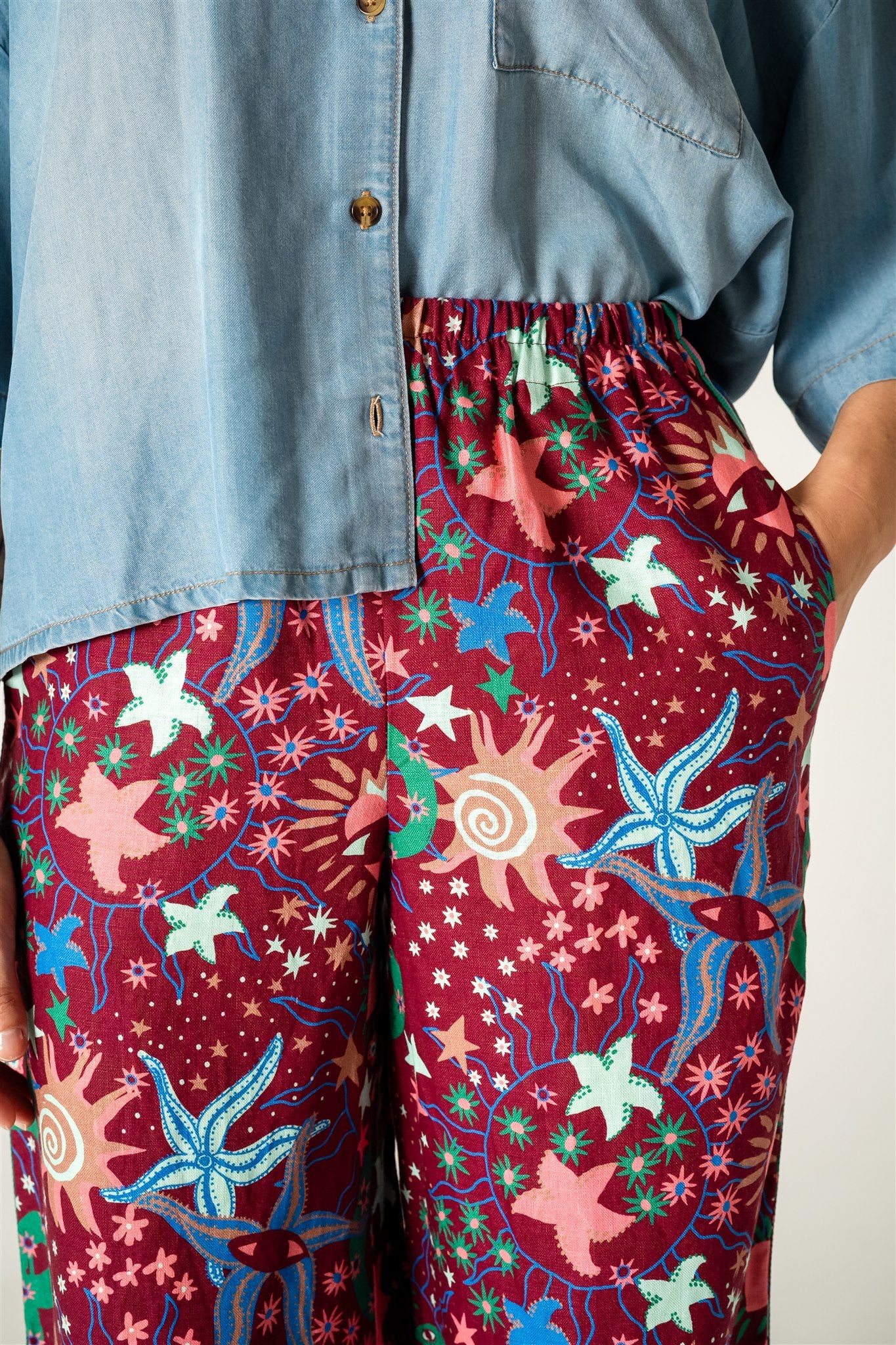 Fleur brings you comfort and style. Fleur is made from 100% Linen with a so soft hand-feel. This relaxed fit has an elasticised waist and a wide leg for effortless comfort. Wear on a night out with a silk cami and flip flop kitten heel and for a more casual look wear back with a sneaker, Alba embroidered cap and tee.